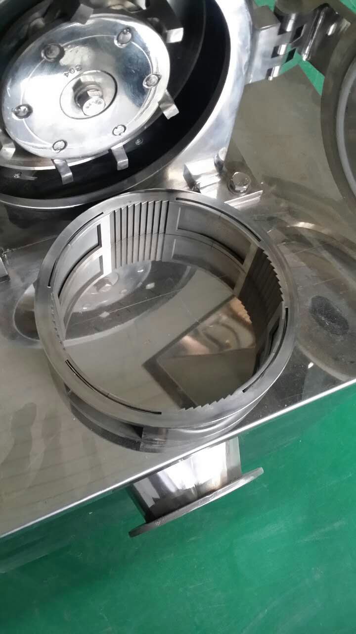 本機利用活動齒盤和固定齒盤的高速相對運動,使被粉碎物經(jīng)齒沖擊、磨擦及物料彼此間沖擊等綜合作用獲得粉碎。本機結構簡單、堅固、運轉平穩(wěn)、粉碎效果良好,被粉碎物可直接由主機磨腔中排出,粒度大小通過更換不同孔徑的網(wǎng)篩獲得,另外該機為全不銹鋼。機殼內壁全部經(jīng)機加工達到表面平滑,改變了以前機型內壁粗糙、積粉的現(xiàn)象、使藥品、食品、化工等生產(chǎn)能符各個生產(chǎn)商的需求,達到了GMP的要求。